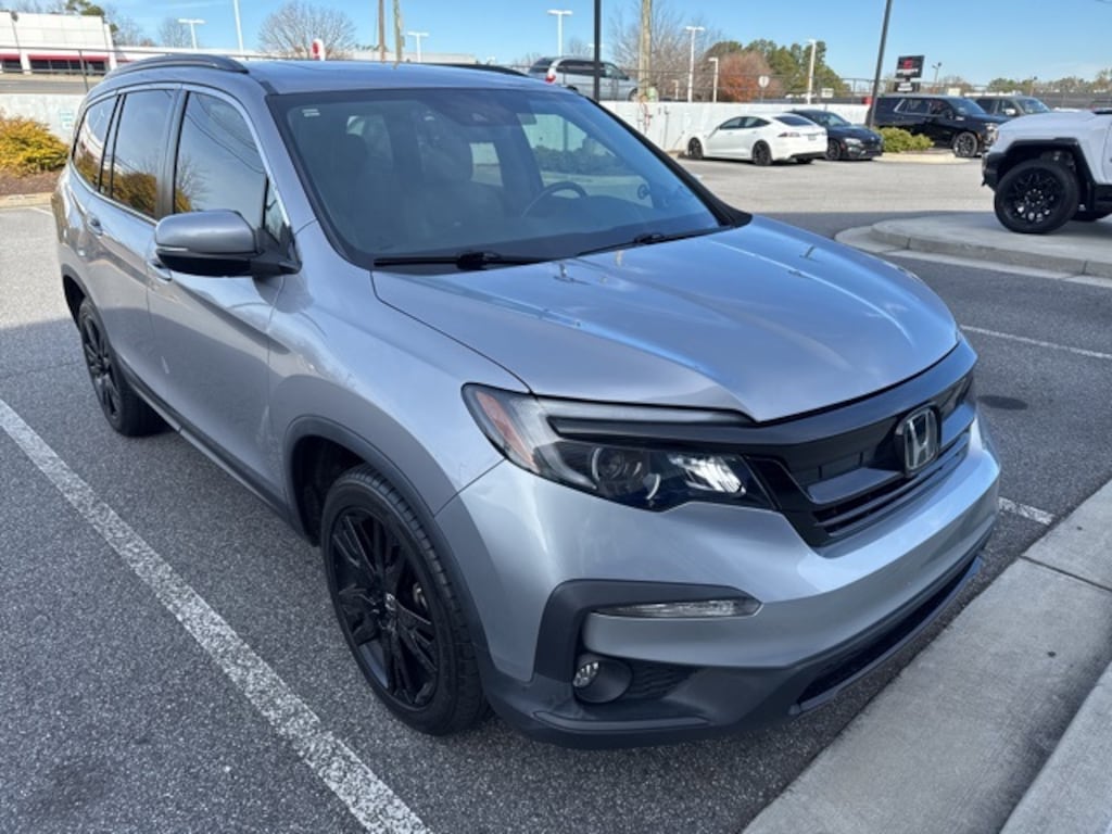 HondaTrue CERTIFIED!! Receive a LIFETIME Limited Powertrain Warranty - FREE OF CHARGE!! CARFAX One-Owner. Clean CARFAX. Certified. Lunar Silver Metallic 2022 Honda Pilot Special Edition FWD 9-Speed Automatic LIFETIME POWERTRAIN WARRANTY, REMAINDER OF FACTORY WARRANTY, BLUETOOTH MP3, BACKUP CAMERA, BLINDSPOT, SUNROOF MOONROOF, SIRIUS XM SATELLITE RADIO, REMOTE KEYLESS ENTRY, REMOTE START, HEATED SEATS, CLEAN CARFAX HISTORY, ONE OWNER, BOUGHT, TRADED AND MAINTAINED AT HONDA CARLAND, LOW MILEAGE, 3rd row seats: split-bench, 7 Speakers, ABS brakes, Alloy wheels, AM/FM radio: SiriusXM, Apple CarPlay/Android Auto, Auto High-beam Headlights, Auto-dimming Rear-View mirror, Automatic temperature control, Blind Spot Information (BSI) System warning, Brake assist, Delay-off headlights, Dual front impact airbags, Dual front side impact airbags, Electronic Stability Control, Exterior Parking Camera Rear, Forward collision: Collision Mitigation Braking System (CMBS) + FCW mitigation, Four wheel independent suspension, Front dual zone A/C, Front fog lights, Fully automatic headlights, Garage door transmitter: HomeLink, Heated door mirrors, Heated Front Bucket Seats, Heated front seats, Lane departure: Lane Keeping Assist System (LKAS) active, Leather Seat Trim, Memory seat, Occupant sensing airbag, Outside temperature display, Overhead airbag, Power door mirrors, Power driver seat, Power Liftgate, Power moonroof, Power passenger seat, Radio data system, Radio: 215-Watt Audio System, Remote keyless entry, Security system, Steering wheel mounted audio controls.