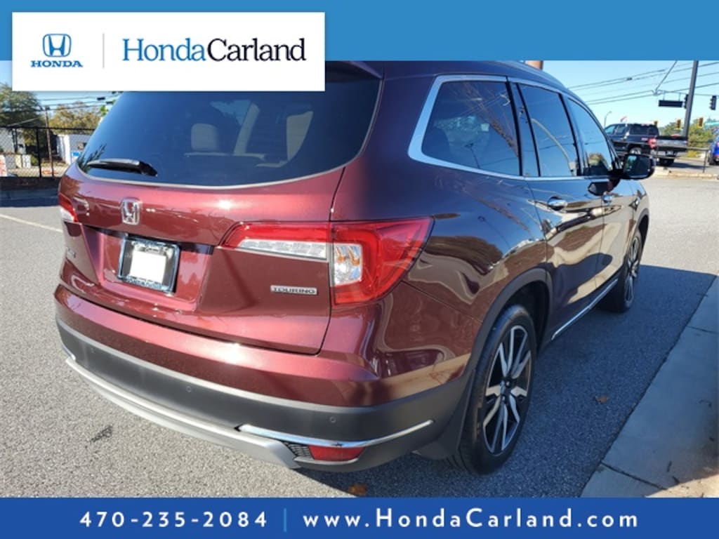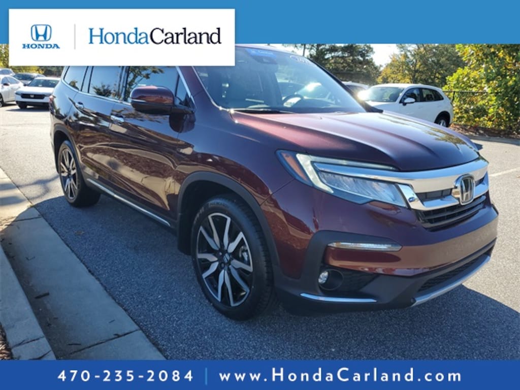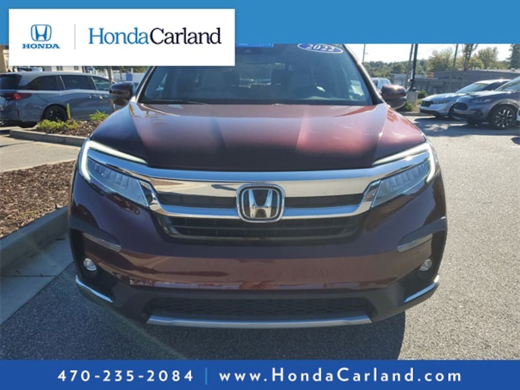 HondaTrue CERTIFIED!! Receive a LIFETIME Limited Powertrain Warranty - FREE OF CHARGE!! CARFAX One-Owner. Deep Scarlet Pearl 2022 Honda Pilot Touring 8 Passenger FWD 9-Speed Automatic LIFETIME POWERTRAIN WARRANTY, BLUETOOTH MP3, BACKUP CAMERA, BLINDSPOT, NAVIGATION NAV GPS, SUNROOF MOONROOF, SIRIUS XM SATELLITE RADIO, CD PLAYER, REMOTE KEYLESS ENTRY, REMOTE START, HEATED SEATS, DVD REAR ENTERTAINMENT, ONE OWNER, 10 Speakers, 3rd row seats: split-bench, A/V remote: CabinControl, ABS brakes, Alloy wheels, AM/FM radio: SiriusXM, Apple CarPlay/Android Auto, Auto High-beam Headlights, Auto-dimming Rear-View mirror, Automatic temperature control, Blind Spot Information (BSI) System warning, Brake assist, Compass, Delay-off headlights, Dual front impact airbags, Dual front side impact airbags, Electronic Stability Control, Exterior Parking Camera Rear, Forward collision: Collision Mitigation Braking System (CMBS) + FCW mitigation, Front dual zone A/C, Front fog lights, Fully automatic headlights, Garage door transmitter: HomeLink, Headphones, Heated door mirrors, Heated Front Bucket Seats, Heated front seats, Heated rear seats, Lane departure: Lane Keeping Assist System (LKAS) active, Leather Seat Trim, Memory seat, Navigation system: Honda Satellite-Linked Navigation System, Overhead airbag, Power door mirrors, Power driver seat, Power Liftgate, Power moonroof, Power passenger seat, Radio data system, Radio: 590-Watt Premium Audio System, Rear audio controls, Remote keyless entry, Security system, Speed control, Steering wheel mounted audio controls.