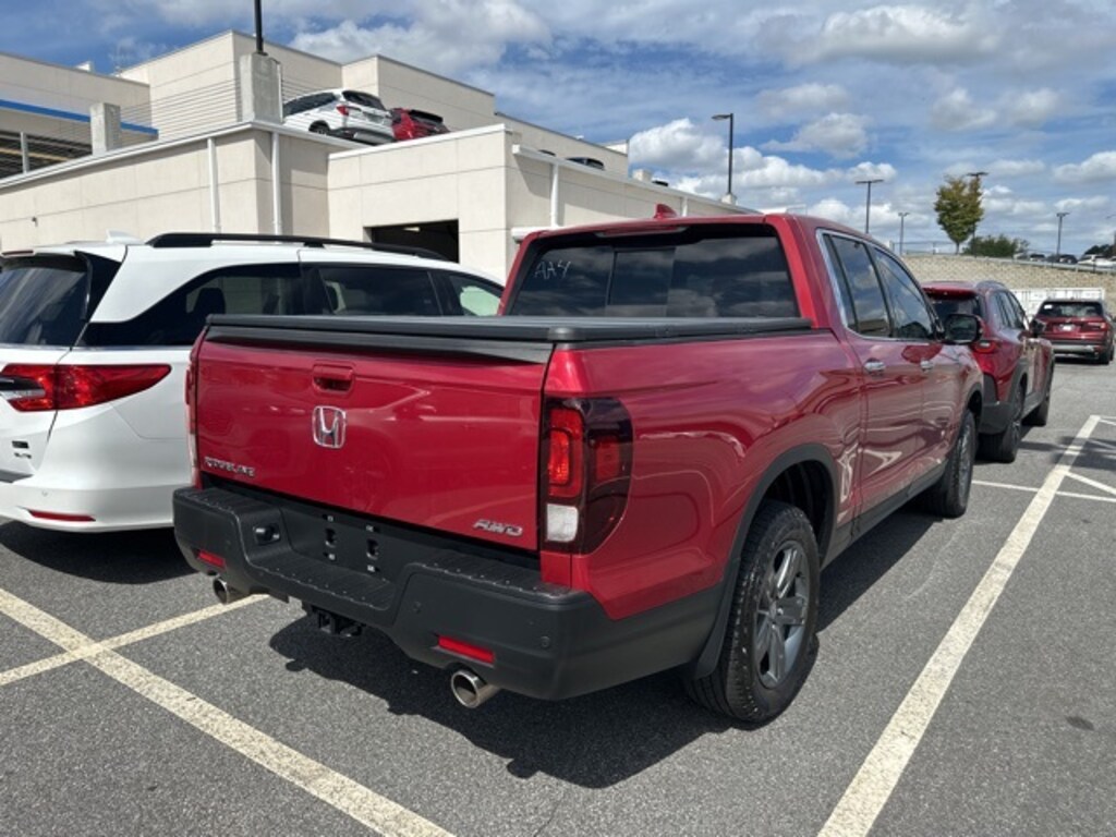 HondaTrue CERTIFIED!! Receive a LIFETIME Limited Powertrain Warranty - FREE OF CHARGE!! CARFAX One-Owner. Clean CARFAX. Radiant Red Metallic II 2022 Honda Ridgeline RTL-E AWD 9-Speed Automatic LIFETIME POWERTRAIN WARRANTY, REMAINDER OF FACTORY WARRANTY, BLUETOOTH MP3, BACKUP CAMERA, BLINDSPOT, NAVIGATION NAV GPS, SUNROOF MOONROOF, SIRIUS XM SATELLITE RADIO, REMOTE KEYLESS ENTRY, REMOTE START, HEATED SEATS, CLEAN CARFAX HISTORY, ONE OWNER, LOW MILEAGE!! Black w/Perforated Leather Seat Trim, 8 Speakers, ABS brakes, Alloy wheels, AM/FM radio: SiriusXM, Apple CarPlay/Android Auto, Auto High-beam Headlights, Auto-dimming Rear-View mirror, Automatic temperature control, Blind Spot Information (BSI) System warning, Brake assist, Compass, Delay-off headlights, Dual front impact airbags, Dual front side impact airbags, Electronic Stability Control, Exterior Parking Camera Rear, Forward collision: Collision Mitigation Braking System (CMBS) + FCW mitigation, Front dual zone A/C, Front fog lights, Fully automatic headlights, Garage door transmitter: HomeLink, Heated door mirrors, Heated Front Bucket Seats, Heated front seats, Heated steering wheel, Honda Satellite-Linked Navigation System, Memory seat, Navigation system: Honda Satellite-Linked Navigation System, Outside temperature display, Overhead airbag, Perforated Leather Seat Trim, Power door mirrors, Power moonroof, Power passenger seat, Radio data system, Radio: 540-Watt Premium Audio System w/8 Speakers, Remote keyless entry, Security system, SiriusXM, Speed control, Steering wheel mounted audio controls.