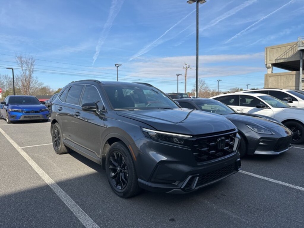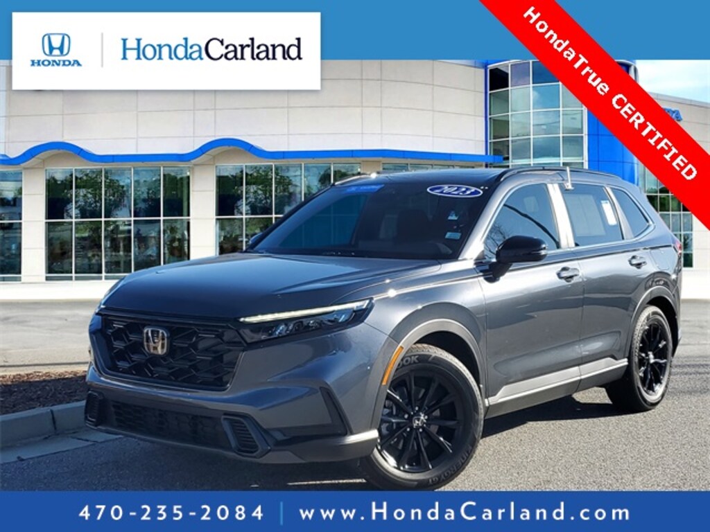 HondaTrue CERTIFIED!! Receive a LIFETIME Limited Powertrain Warranty - FREE OF CHARGE!! CARFAX One-Owner. Clean CARFAX. Meteorite Gray Metallic 2023 Honda CR-V Hybrid Sport FWD eCVT LIFETIME POWERTRAIN WARRANTY, REMAINDER OF FACTORY WARRANTY, BLUETOOTH MP3, BACKUP CAMERA, BLINDSPOT, SUNROOF MOONROOF, REMOTE KEYLESS ENTRY, REMOTE START, HEATED SEATS, CLEAN CARFAX HISTORY, ONE OWNER, BOUGHT, TRADED AND MAINTAINED AT HONDA CARLAND, LOW MILEAGE, 2.0L I4 DOHC 16V, 6 Speakers, ABS brakes, Adaptive Cruise Control: Adaptive Cruise Control (ACC) with Low-Speed Follow, Alloy wheels, Apple CarPlay/Android Auto, Auto High-beam Headlights, Automatic temperature control, Brake assist, Cloth Seat Trim, Compass, Delay-off headlights, Dual front impact airbags, Dual front side impact airbags, Electronic Stability Control, Exterior Parking Camera Rear, Front dual zone A/C, Fully automatic headlights, Heated door mirrors, Heated Front Bucket Seats, Heated front seats, Knee airbag, Outside temperature display, Overhead airbag, Power door mirrors, Power driver seat, Power moonroof, Radio data system, Radio: 240-Watt AM/FM Audio System, Remote keyless entry, Security system, Speed control, Steering wheel mounted audio controls.