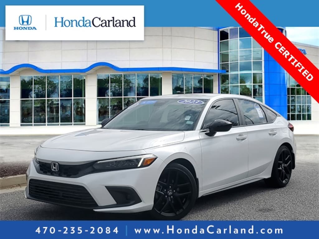 #1 PRICE AND #1 VALUE WITHIN 500 MILES!! HondaTrue CERTIFIED!! Receive a LIFETIME Limited Powertrain Warranty - FREE OF CHARGE!! CARFAX One-Owner. Clean CARFAX. Platinum White Pearl 2023 Honda Civic Sport FWD CVT LIFETIME POWERTRAIN WARRANTY, REMAINDER OF FACTORY WARRANTY, BLUETOOTH MP3, BACKUP CAMERA, REMOTE KEYLESS ENTRY, REMOTE START, CLEAN CARFAX HISTORY, ONE OWNER, LOW MILEAGE, Black w/Fabric Seating Surfaces, 8 Speakers, ABS brakes, Adaptive Cruise Control: Adaptive Cruise Control (ACC) with Low-Speed Follow, Alloy wheels, AM/FM radio, Apple CarPlay/Android Auto, Auto High-beam Headlights, Automatic temperature control, Brake assist, Delay-off headlights, Dual front impact airbags, Dual front side impact airbags, Electronic Stability Control, Exterior Parking Camera Rear, Fabric Seating Surfaces, Front Bucket Seats, Fully automatic headlights, Knee airbag, Lane departure: Lane Keeping Assist System (LKAS) active, Outside temperature display, Overhead airbag, Power door mirrors, Radio data system, Radio: 180-Watt Audio System, Remote keyless entry, Security system, Steering wheel mounted audio controls.