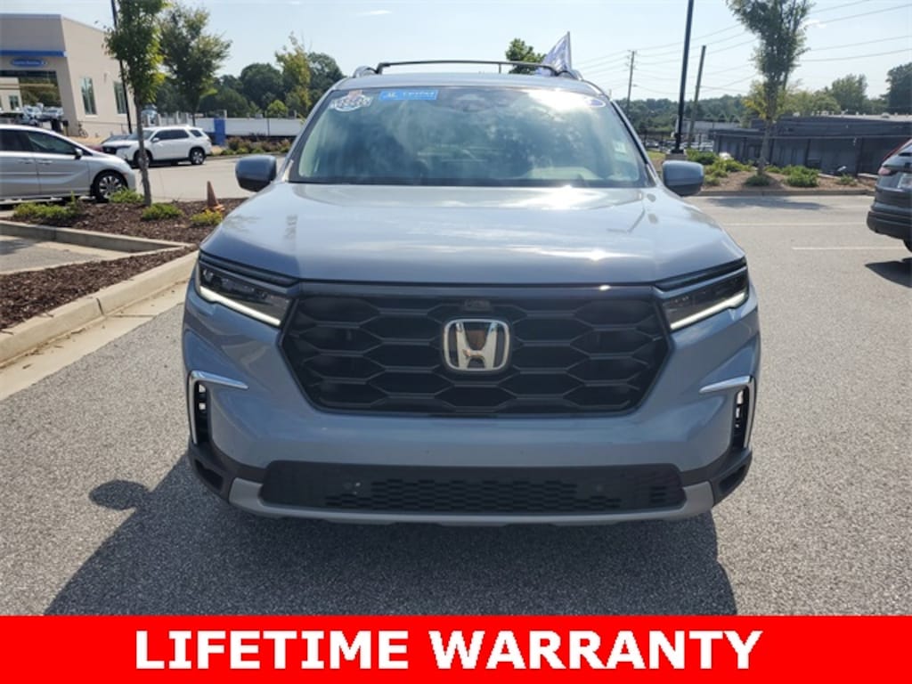#1 PRICE IN ATLANTA!! HondaTrue CERTIFIED!! Receive a LIFETIME Limited Powertrain Warranty - FREE OF CHARGE!! CARFAX One-Owner. Clean CARFAX. Sonic Gray Pearl 2025 Honda Pilot Elite AWD 10-Speed Automatic LIFETIME POWERTRAIN WARRANTY, REMAINDER OF FACTORY WARRANTY, BLUETOOTH MP3, BACKUP CAMERA, BLINDSPOT, NAVIGATION NAV GPS, SUNROOF MOONROOF, SIRIUS XM SATELLITE RADIO, REMOTE KEYLESS ENTRY, REMOTE START, HEATED SEATS, COOLED SEATS, CLEAN CARFAX HISTORY, ONE OWNER, BOUGHT, TRADED AND MAINTAINED AT HONDA CARLAND, LOW MILEAGE, AWD, 12 Speakers, 3rd row seats: split-bench, ABS brakes, Adaptive Cruise Control: Adaptive Cruise Control (ACC) with Low-Speed Follow, Alloy wheels, AM/FM radio: SiriusXM, Apple CarPlay/Android Auto, Auto High-beam Headlights, Auto-dimming door mirrors, Auto-dimming Rear-View mirror, Automatic temperature control, Blind Spot Information (BSI) System warning, Body Side Molding (Body Colored), Bose Premium Sound System, Brake assist, Delay-off headlights, Dual front impact airbags, Dual front side impact airbags, Electronic Stability Control, Exterior Parking Camera Rear, Front dual zone A/C, Front fog lights, Fully automatic headlights, Garage door transmitter: HomeLink, Heads-Up Display, Heated & Ventilated Front Bucket Seats, Heated door mirrors, Heated front seats, Heated rear seats, Heated steering wheel, Honda Satellite-Linked Navigation System, Lane departure: Lane Keeping Assist System (LKAS) active, Memory seat, Navigation system: Honda Satellite-Linked Navigation System, Outside temperature display, Overhead airbag, Panic alarm, Perforated Leather Seat Trim, Power door mirrors, Power driver seat, Power Liftgate, Power moonroof, Radio data system, Rain sensing wipers, Rear air conditioning, Rear Gloss Black Elite Emblems, Reclining 3rd row seat, Remote keyless entry, Running Boards, Security system, SiriusXM, Steering wheel mounted audio controls, Ventilated front seats.