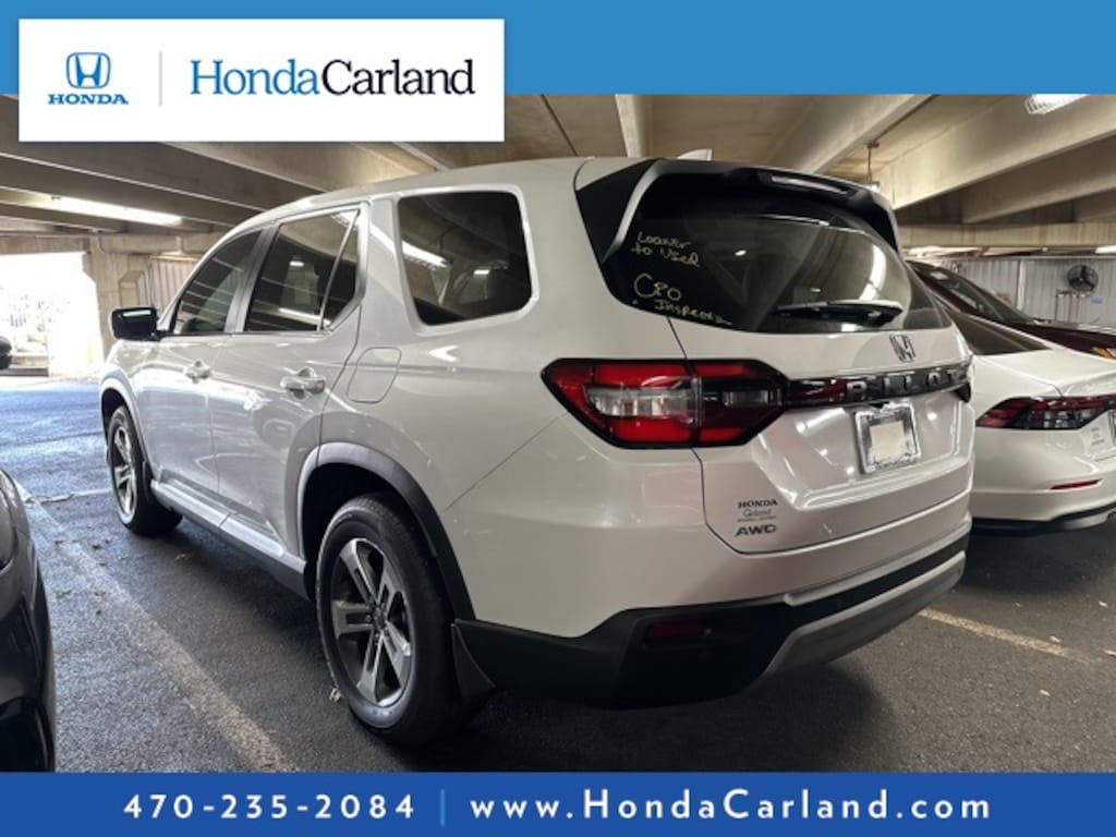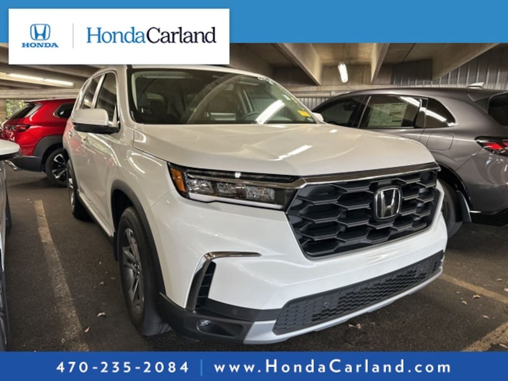 HondaTrue CERTIFIED!! Receive a LIFETIME Limited Powertrain Warranty - FREE OF CHARGE!! Platinum White 2025 Honda Pilot EX-L AWD 10-Speed Automatic LIFETIME POWERTRAIN WARRANTY, REMAINDER OF FACTORY WARRANTY, BLUETOOTH MP3, BACKUP CAMERA, BLINDSPOT, SUNROOF MOONROOF, SIRIUS XM SATELLITE RADIO, REMOTE KEYLESS ENTRY, REMOTE START, HEATED SEATS, CLEAN CARFAX HISTORY, BOUGHT, TRADED AND MAINTAINED AT HONDA CARLAND, SERVICE RECORDS AVAILABLE, LOW MILEAGE, AWD, 3rd row seats: split-bench, 9 Speakers, ABS brakes, Adaptive Cruise Control: Adaptive Cruise Control (ACC) with Low-Speed Follow, Alloy wheels, AM/FM radio: SiriusXM, Apple CarPlay/Android Auto, Auto High-beam Headlights, Auto-dimming Rear-View mirror, Automatic temperature control, Blind Spot Information (BSI) System warning, Brake assist, Delay-off headlights, Dual front impact airbags, Dual front side impact airbags, Electronic Stability Control, Exterior Parking Camera Rear, Front dual zone A/C, Front fog lights, Fully automatic headlights, Garage door transmitter: HomeLink, Heated door mirrors, Heated Front Bucket Seats, Heated front seats, Knee airbag, Lane departure: Lane Keeping Assist System (LKAS) active, Leather Seat Trim, Memory seat, Outside temperature display, Overhead airbag, Power door mirrors, Power driver seat, Power Liftgate, Power passenger seat, Radio data system, Radio: 245-Watt Audio System, Remote keyless entry, Security system, SiriusXM, Steering wheel mounted audio controls.