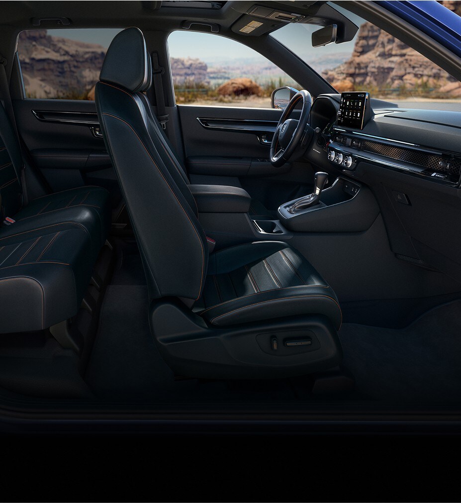 Inside, you'll find premium amenities and intuitive technology. Available leather-trimmed seats with heating for the front passengers offer optimum comfort on chilly mornings. An optional heated steering wheel keeps your hands warm, as well. The 2026 Honda CR-V Hybrid's 60/40-split folding rear seatback allows you to easily configure the cargo area to accommodate your gear, from camping equipment to sports bags. With the back seats down, the 2026 Honda CR-V Hybrid has 71.8 cubic feet of cargo space.
