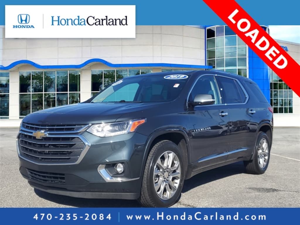 Receive a 3 Month or 3000 Miles Limited Powertrain Warranty - FREE OF CHARGE!! CARFAX One-Owner. Graphite Metallic 2019 Chevrolet Traverse Premier FWD 9-Speed Automatic BLUETOOTH MP3, BACKUP CAMERA, BLINDSPOT, NAVIGATION NAV GPS, SUNROOF MOONROOF, SIRIUS XM SATELLITE RADIO, REMOTE KEYLESS ENTRY, REMOTE START, HEATED SEATS, COOLED SEATS, ONE OWNER, 10 Speakers, 3rd row seats: split-bench, ABS brakes, Alloy wheels, AM/FM radio: SiriusXM, Apple CarPlay/Android Auto, Auto-dimming door mirrors, Auto-dimming Rear-View mirror, Automatic temperature control, Bose Premium 10-Speaker Audio System Feature, Brake assist, Compass, Delay-off headlights, Driver Confidence II Package, Dual front impact airbags, Dual front side impact airbags, Dual SkyScape 2-Panel Power Sunroof, Electronic Stability Control, Following Distance Indicator, Forward Collision Alert, Front dual zone A/C, Front fog lights, Front Pedestrian Braking, Fully automatic headlights, Garage door transmitter, Heated door mirrors, Heated front seats, Heated rear seats, Heated steering wheel, IntelliBeam Auto High Beam Control Headlamps, Lane Keep Assist w/Lane Departure Warning, Low Speed Forward Automatic Braking, Memory seat, Navigation System, Overhead airbag, Perforated Leather-Appointed Seat Trim, Power driver seat, Power Liftgate, Power passenger seat, Preferred Equipment Group 1LZ, Premium audio system: Chevrolet MyLink, Radio: Chevrolet Infotainment AM/FM Stereo w/Navigation, Remote keyless entry, Roof rack: rails only, Security system, SiriusXM Radio, Speed control, Steering wheel memory, Steering wheel mounted audio controls, Ventilated front seats.
