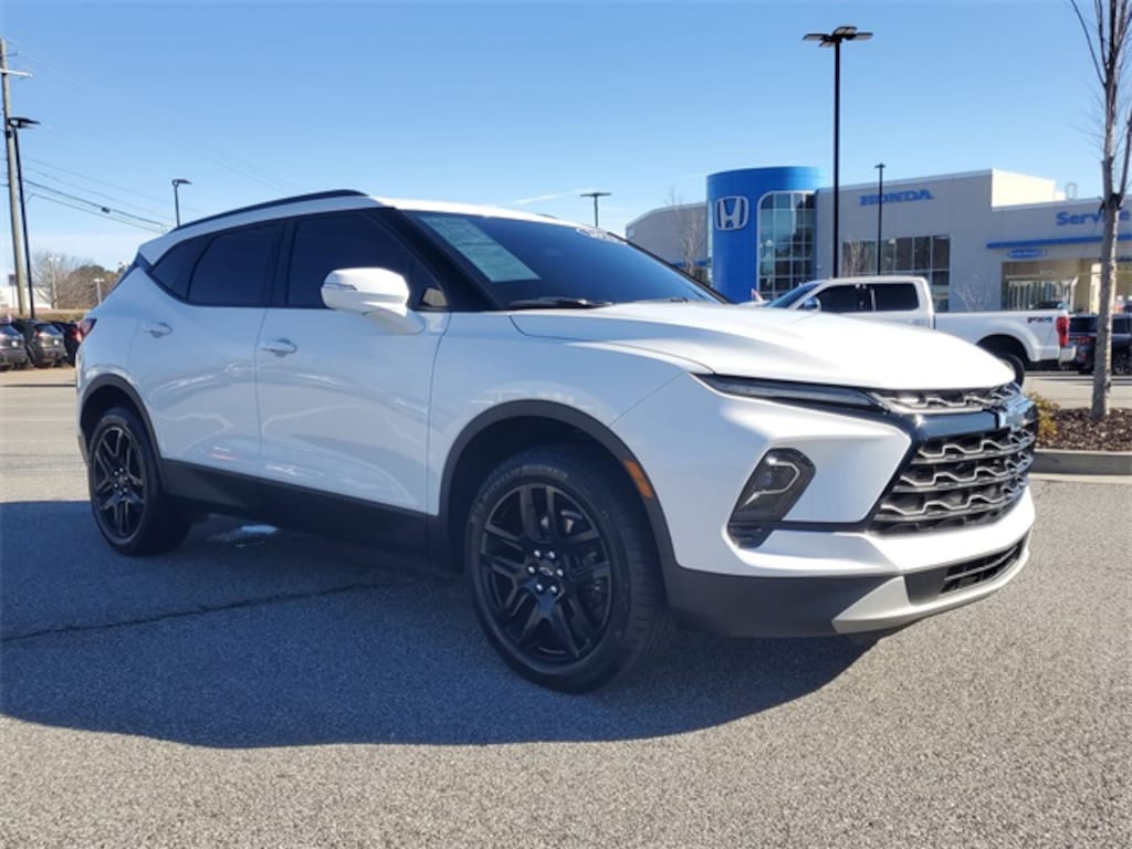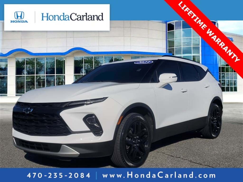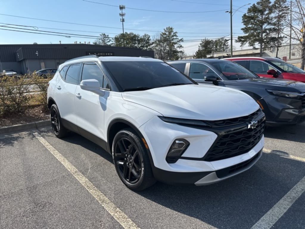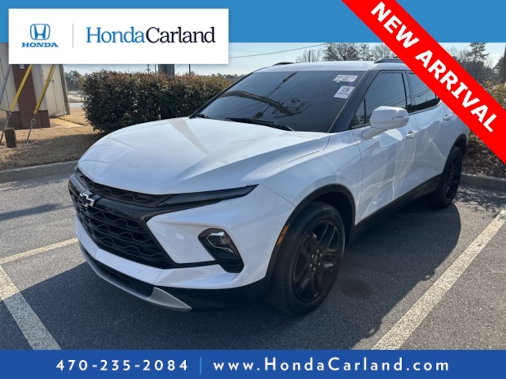Receive a LIFETIME Limited Powertrain Warranty - FREE OF CHARGE!! Clean CARFAX. Summit White 2023 Chevrolet Blazer LT FWD 9-Speed Automatic with Overdrive LIFETIME POWERTRAIN WARRANTY, REMAINDER OF FACTORY WARRANTY, BLUETOOTH MP3, BACKUP CAMERA, BLINDSPOT, SIRIUS XM SATELLITE RADIO, REMOTE KEYLESS ENTRY, REMOTE START, HEATED SEATS, CLEAN CARFAX HISTORY, LOW MILEAGE, 1st & 2nd Row All-Weather Floor Liners (LPO), 6 Speakers, 6-Speaker Audio System Feature, 6-Way Power Front Passenger Seat Adjuster, 8-Way Power Driver Seat Adjuster, ABS brakes, AM/FM radio: SiriusXM with 360L, Apple CarPlay/Android Auto, Auto High-beam Headlights, Auto-dimming door mirrors, Auto-dimming Rear-View mirror, Automatic temperature control, Black Grille Bar LPO), Black Grille Bar Package (LPO), Black Roof-Mounted Side Rails, Brake assist, Compass, Delay-off headlights, Driver Confidence Package, Dual front impact airbags, Dual front side impact airbags, Electronic Stability Control, Floor Liner Package (LPO), Front & Rear Black Bowties, Front dual zone A/C, Fully automatic headlights, Garage door transmitter, Gloss Black Emblem Kit (LPO), Heated door mirrors, Heated Driver & Front Passenger Seats, Heated front seats, Inside Rear-View Auto-Dimming Mirror, Integrated Cargo Liner (LPO), Knee airbag, Lane Change Alert w/Side Blind Zone Alert, Outside Heated Power-Adjustable Body-Color Mirrors, Overhead airbag, Perforated Leather-Appointed Seat Trim, Power door mirrors, Power Driver Lumbar Control, Power driver seat, Power Liftgate, Power passenger seat, Preferred Equipment Group 3LT, Radio: Chevrolet Infotainment 3 Plus System, Rear Cross Traffic Alert, Rear Park Assist w/Audible Warning, Rear Power Programmable Liftgate, Remote keyless entry, Ride & Handling Suspension, Security system, SiriusXM w/360L, Speed control, Steering wheel mounted audio controls, Universal Home Remote, Wheels: 20" Gloss Black Aluminum.