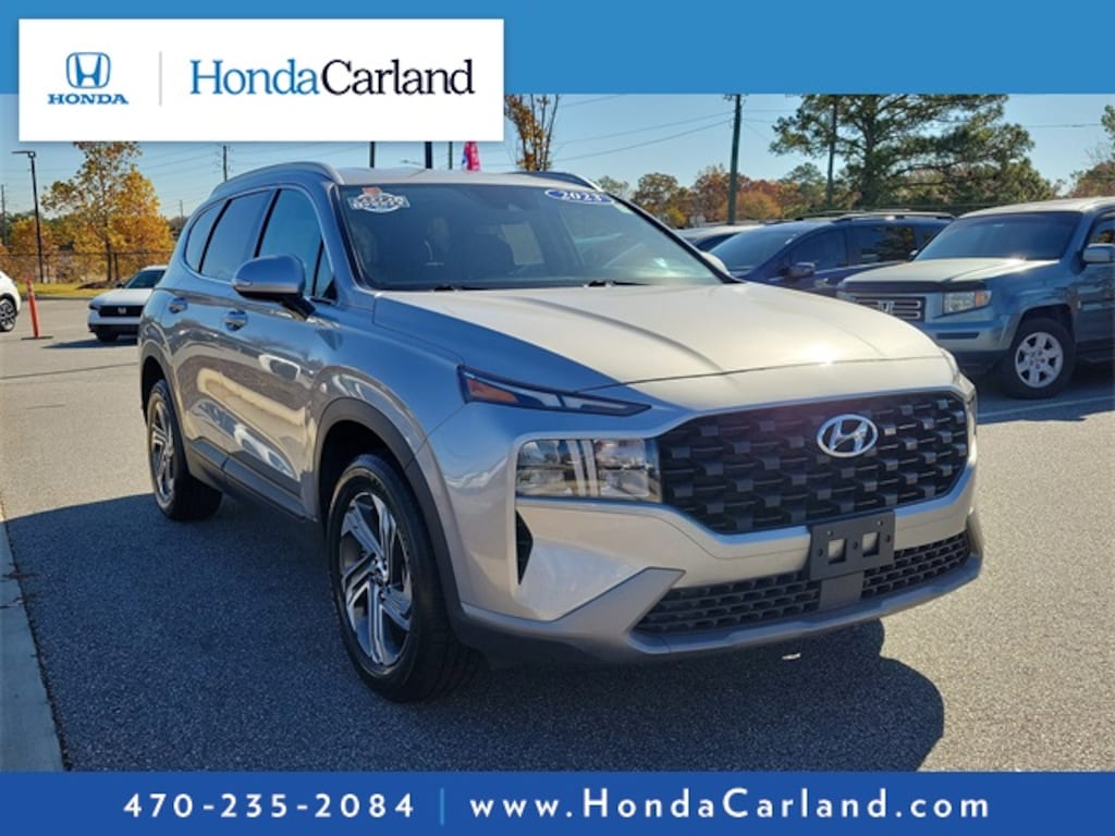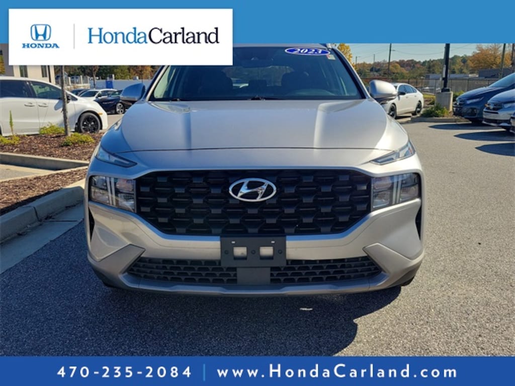 Receive a LIFETIME Limited Powertrain Warranty - FREE OF CHARGE!! CARFAX One-Owner. Clean CARFAX. Shimmering Silver Pearl 2023 Hyundai Santa Fe SEL FWD 8-Speed Automatic with SHIFTRONIC LIFETIME POWERTRAIN WARRANTY, BLUETOOTH MP3, BACKUP CAMERA, BLINDSPOT, NAVIGATION NAV GPS, SIRIUS XM SATELLITE RADIO, REMOTE KEYLESS ENTRY, REMOTE START, HEATED SEATS, CLEAN CARFAX HISTORY, ONE OWNER, Black w/Stain-Resistant Cloth Seat Trim, 6 Speakers, ABS brakes, Alloy wheels, AM/FM radio: SiriusXM, Apple CarPlay & Android Auto, Auto High-beam Headlights, Automatic temperature control, Brake assist, Delay-off headlights, Dual front impact airbags, Dual front side impact airbags, Electronic Stability Control, Exterior Parking Camera Rear, Front dual zone A/C, Fully automatic headlights, Heated Front Bucket Seats, Heated front seats, Navigation System, Option Group 01, Overhead airbag, Panic alarm, Power door mirrors, Power driver seat, Power Liftgate, Radio: AM/FM Display Audio, Remote keyless entry, Security system, Speed control, Stain-Resistant Cloth Seat Trim, Steering wheel mounted audio controls.