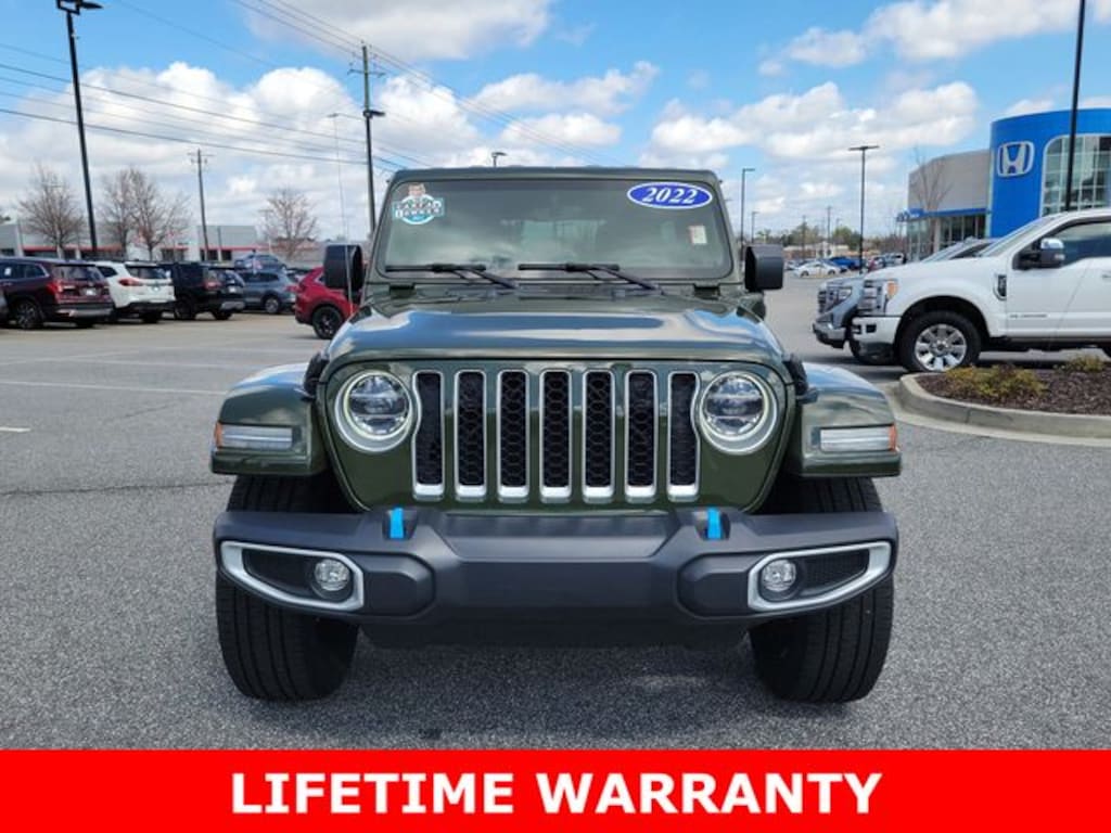 #1 PRICE IN ATLANTA!! CARFAX One-Owner. Sarge Green Clearcoat 2022 Jeep Wrangler Unlimited Sahara 4xe 4WD 8-Speed Automatic REMAINDER OF FACTORY WARRANTY, BLUETOOTH MP3, BACKUP CAMERA, NAVIGATION NAV GPS, SIRIUS XM SATELLITE RADIO, REMOTE KEYLESS ENTRY, REMOTE START, HEATED SEATS, CLEAN CARFAX HISTORY, ONE OWNER, LOW MILEAGE, 2.0L I4 DOHC, 9 Speakers, ABS brakes, Alloy wheels, AM/FM radio, Body Color 3-Piece Hard Top, Cold Weather Group, Compass, Dual front impact airbags, Dual front side impact airbags, Electronic Stability Control, Emergency communication system: SiriusXM Guardian, Freedom Panel Storage Bag, Front anti-roll bar, Front dual zone A/C, Front fog lights, Fully automatic headlights, Heated door mirrors, Heated Front Seats, Heated Steering Wheel, Illuminated entry, Integrated roll-over protection, Low tire pressure warning, Navigation System, Occupant sensing airbag, ParkView Rear Back-Up Camera, Passenger door bin, Quick Order Package 29P, Radio: Uconnect 4C Nav w/8.4" Display, Rear Window Defroster, Rear Window Wiper/Washer, Remote keyless entry, Remote Start System, Security system, Traction control.