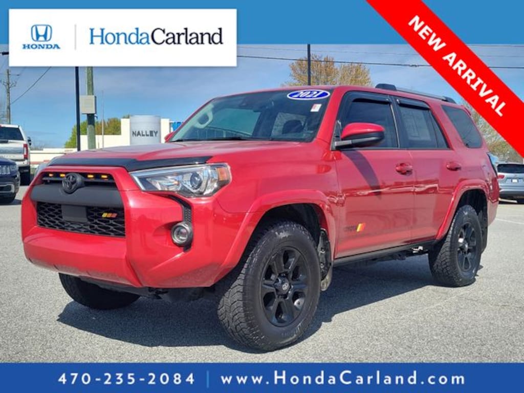 Receive a 3 Month or 3000 Miles Limited Powertrain Warranty - FREE OF CHARGE!! Barcelona Red Metallic 2021 Toyota 4Runner SR5 4WD 5-Speed Automatic with Overdrive BLUETOOTH MP3, BACKUP CAMERA, NAVIGATION NAV GPS, SIRIUS XM SATELLITE RADIO, REMOTE KEYLESS ENTRY, 4WD, 3rd ROW SEATS, Black/Graphite w/Fabric Seat Trim, 8 Speakers, ABS brakes, Alloy wheels, AM/FM radio: SiriusXM, Anti-whiplash front head restraints, Apple CarPlay/Android Auto, Auto High-beam Headlights, Dual front impact airbags, Dual front side impact airbags, Emergency communication system: Safety Connect with 1-year trial, Exterior Parking Camera Rear, Fabric-Trimmed 50/50 Split Fold-Flat 3rd Row, Front fog lights, Heated door mirrors, Knee airbag, Navigation System, Power door mirrors, Power driver seat, Power windows, Radio: Audio, Radio: Premium Audio w/Dynamic Navigation, Remote keyless entry, Security system, Steering wheel mounted audio controls, Trunk Carpet.